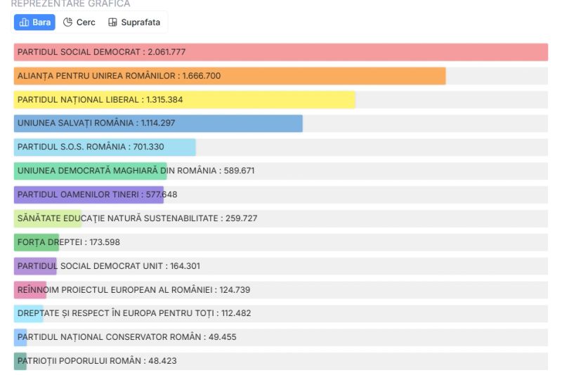Biroul Electoral Central a numărat voturile din peste 99% dintre secții. Conform datelor de până la această oră, șapte partide vor avea reprezentanți în Senat și Camera Deputaților în viitorul mandat. În prezent, ordinea partidelor după alegerile parlamentare este PSD, AUR, PNL, USR. Este însă puțin probabil să apară schimbări având în vedere că numărătoarea voturilor la alegerile parlamentare 2024 este aproape finalizată.
