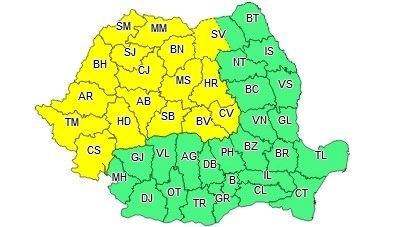 Administrația Națională de Meteorologie a emis noi coduri galbene de furtuni.