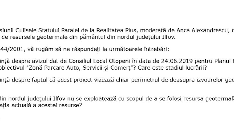 Ca să tragă de timp ne-au spus să le dăm amănunte despre ce parcare e vorba, dar mai jos ne spun ca ei au fost primii care au vrut sa faca proiect cu apele geotermale din Ilfov. Deci știu exact despre ce e vorba.