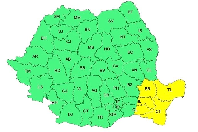 Administrația Națională de Meteorologie a emis un nou cod galben de fenomene meteo periculoase.