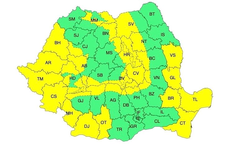 ANM: COD PORTOCALIU DE NINSORI PUTERNICE ȘI VISCOL, COD GALBEN DE VIJELII