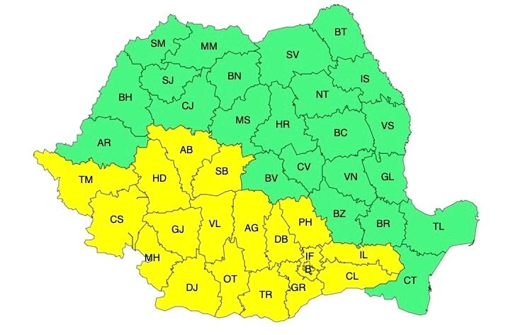 AVERTIZARE METEO COD GALBEN ȘI COD PORTOCALIU DE CANICULĂ