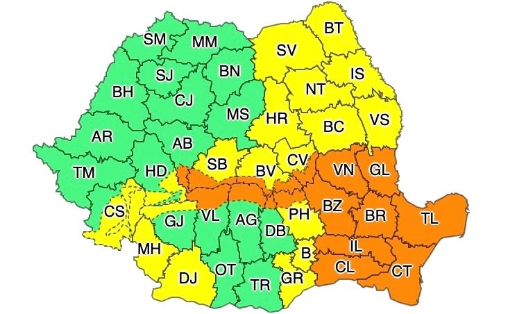 În funcţie de evoluţia şi intensitatea fenomenelor meteorologice, Administraţia Naţională de Meteorologie va actualiza prezentul mesaj.