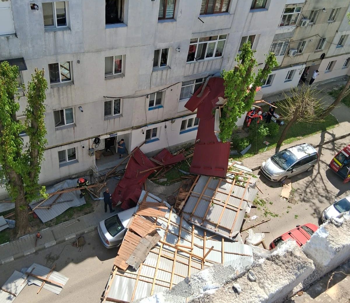 În urma evenimentului, mai multe autoturisme parcate în zonă au suferit avarii.