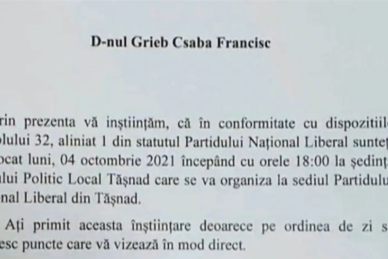 Emil Șuhani, fost secretar general adjunct PNL Satu Mare, a fost anunțat că, pe 1 octombrie, e convocat la o ședință.
