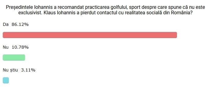 "Golful este un sport care nu este deloc exclusivist și care oferă un foarte bun prilej de a petrece mai mult timp în natură, de a face mișcare, mai ales în acest context pandemic care face dificilă practicarea multor sporturi", mai spune Iohannis, cu acea ocazie.
