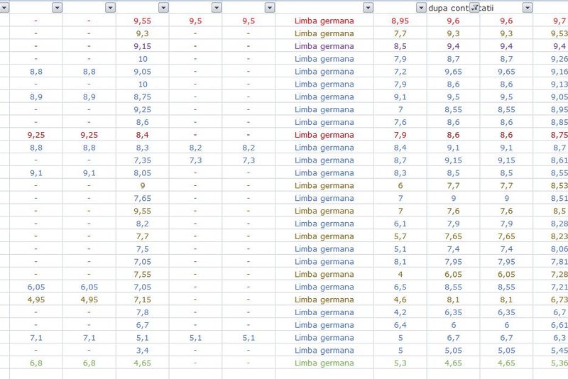 este mesajul transmis de o profesoară.Mai jos, tabelul cu notele inițiale și cele după contestație, la limba germană: