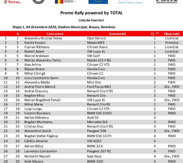 Lista participanților la Promo Rally Brașov